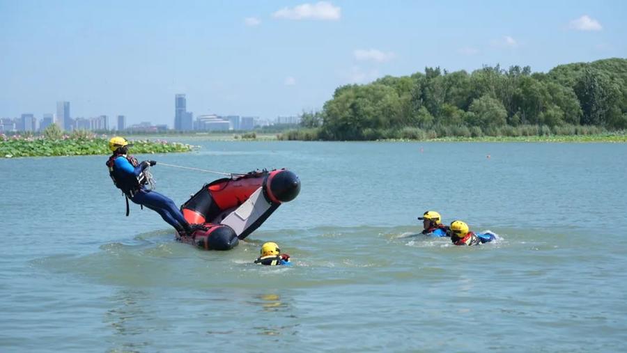 本次演练模拟汛期强降雨导致城市内涝和河道水位上涨的实战场景,围绕城市内涝救援、水域救援、溺水急救和舟艇驾驶4个科目,相继进行水中破窗、涉水车辆转移、水上救援技术、溺水救治、舟艇驾驶技能等项目,全面展示多样化专业救援措施及先进救援装备,实现了技术、人力、机制的深度融合。