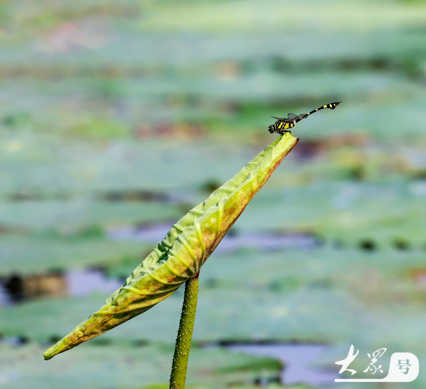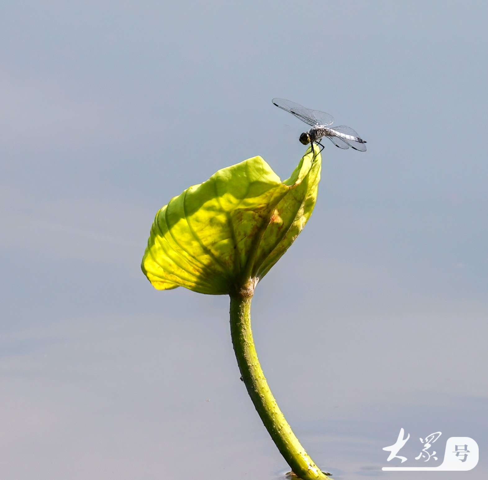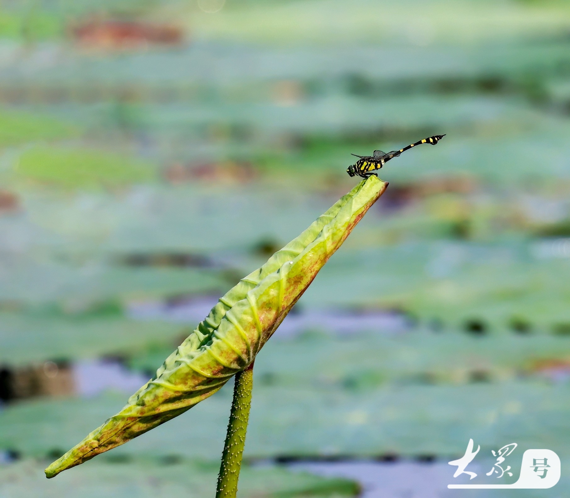 荷叶青翠欲滴,蜻蜓轻盈停驻