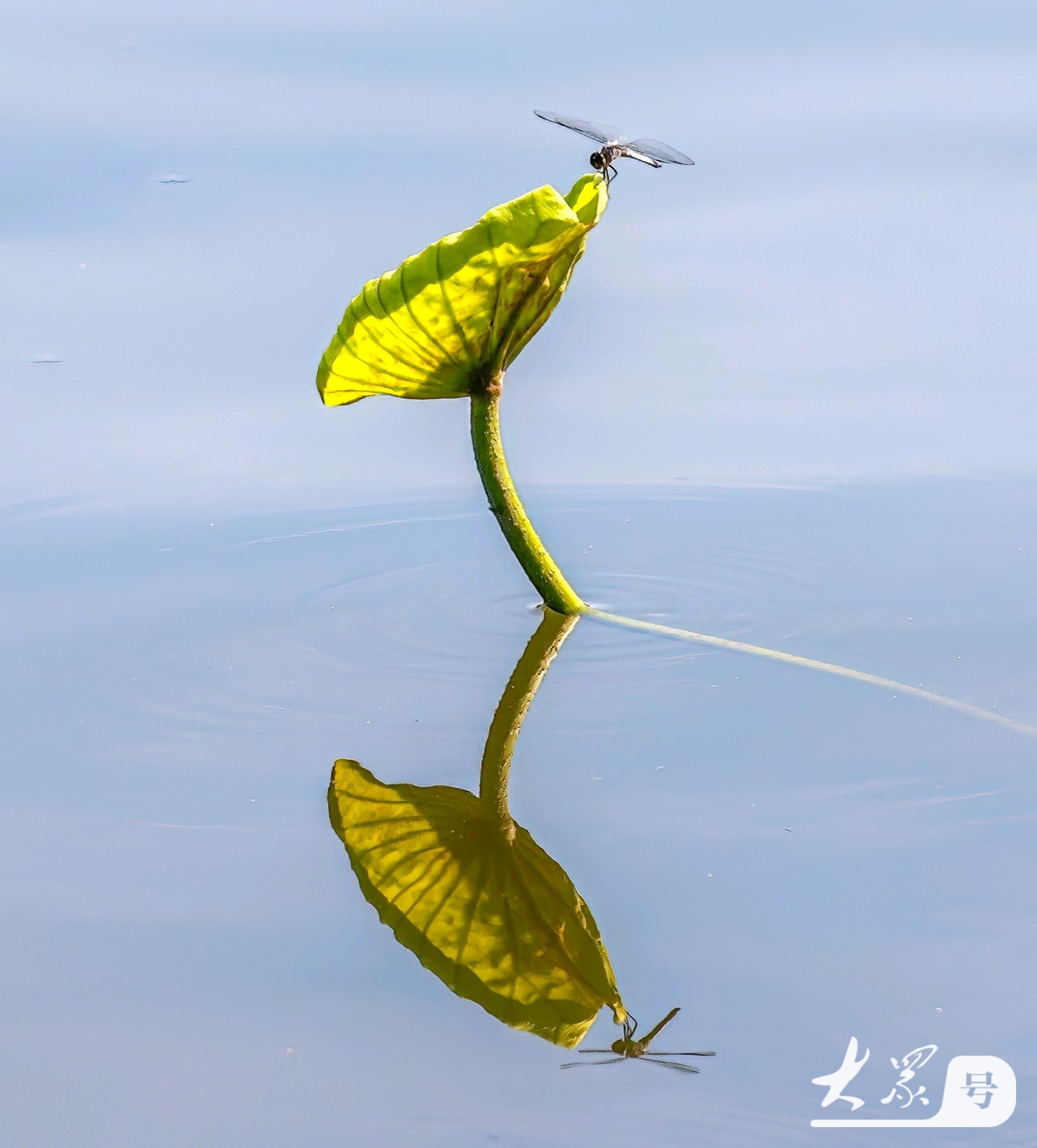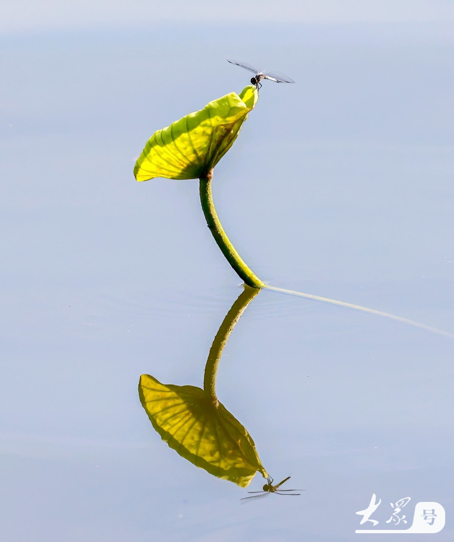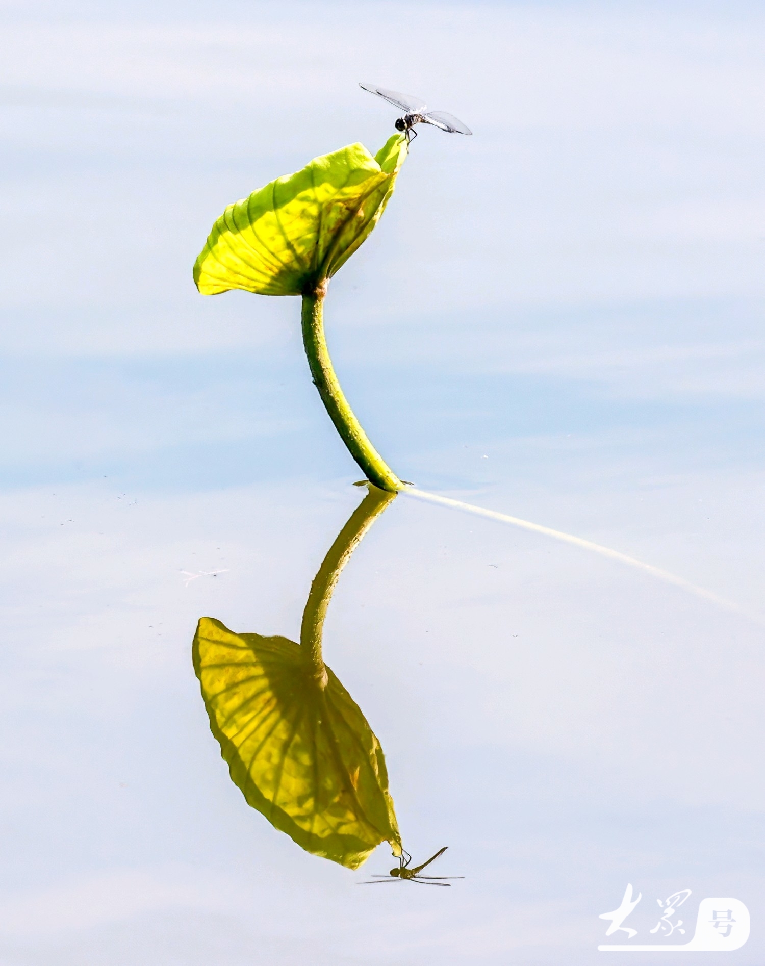 荷叶青翠欲滴,蜻蜓轻盈停驻