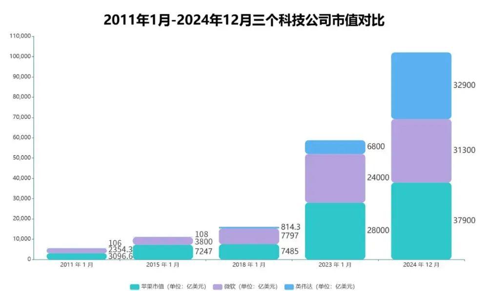 更值得关注的是,与2024年12月相比,苹果的市值还下滑了0.6万亿美元。