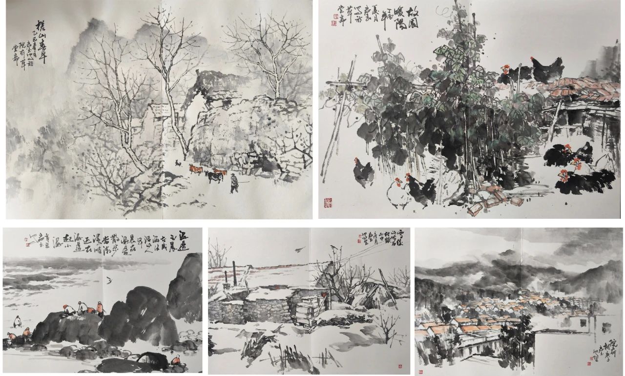 情之所至,笔墨常开,景发于新,自写情怀。胶东渔村那特有的海草房、农家院、雪景、柴草垛,和雨落港湾、渔民在海边捕鱼、晒海带、装置海鲜、渔民节等特色场景,以及铁槎山、院前村、谷牧故居等文旅胜地,都被刘君玉先生以契合自我性情的水墨技法体系付诸画面,以写意为旨,以传神为要,其禀赋、才情、记忆、乡愁寄寓其中,不务表象之浮华,而以朴质和内秀打动人,将观者的心绪引向画面的深处。往事悠悠,岁月静好,雪色留痕,迭起心潮。