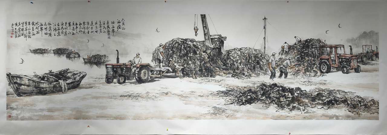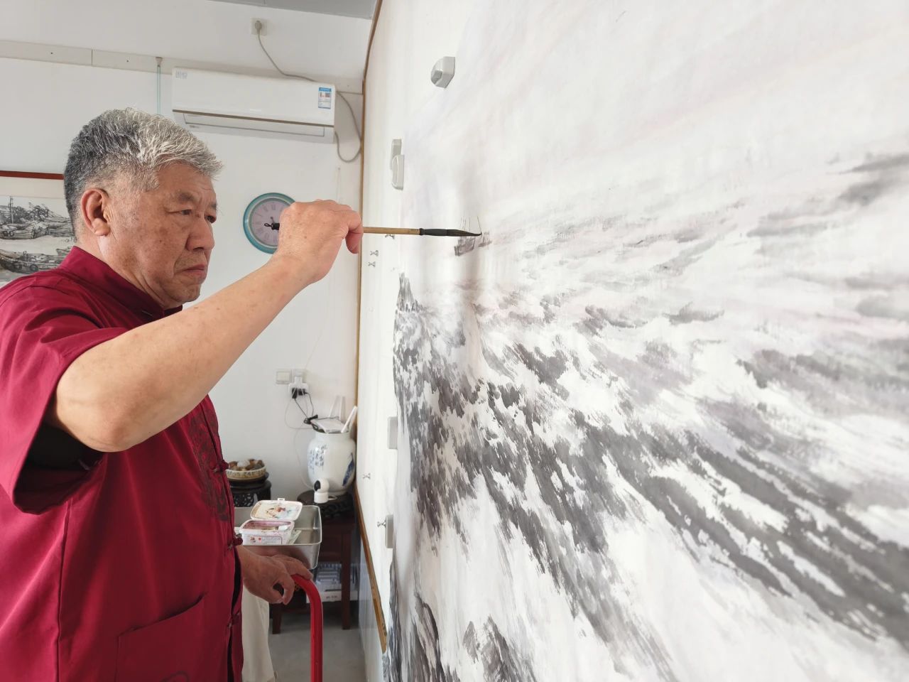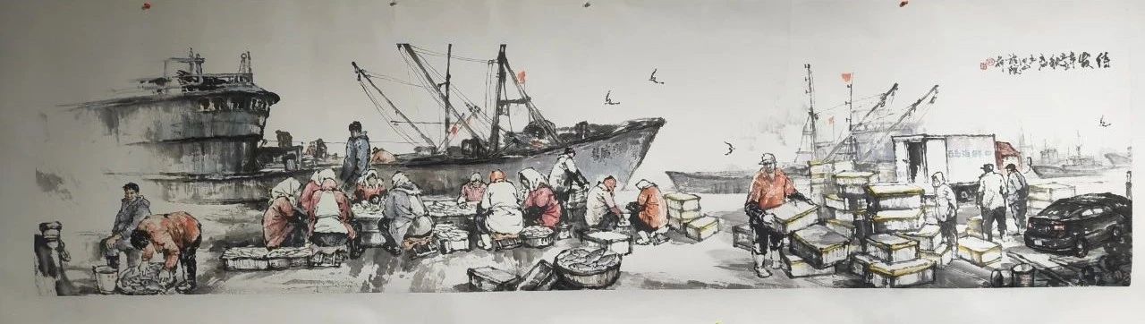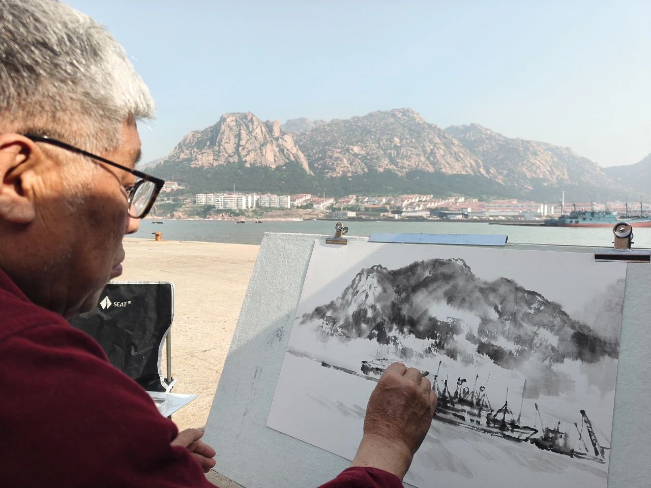 自然而然,他将自己的绘画艺术深深地扎根在这里,通过无数次采风体察挖掘家乡的文旅资源,自觉自发地拿起笔来倾情描绘自己在这片热土上的亲身所历、亲眼所见、亲耳所闻、亲心所感。于是,胶东渔村一带便成为他取之不尽用之不竭的创作源泉,成为其无可替代的精神家园。