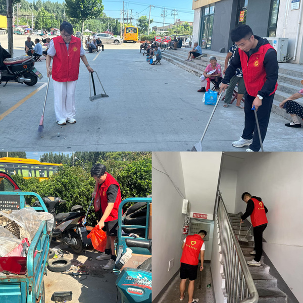 活动当日,志愿者们统一身着红色马甲,精神饱满地投身社区服务。在公共区域清扫环节,大家分工明确、默契配合:手持扫帚、夹子等清扫工具,将路面垃圾、杂物进行细致清理,不放过任何卫生死角;同时,深入角落,搬运堆积废旧物品,让原本杂乱的区域恢复整洁。从小区道路到楼道台阶,志愿者们的身影穿梭各处,用汗水换来了社区环境的清爽有序。