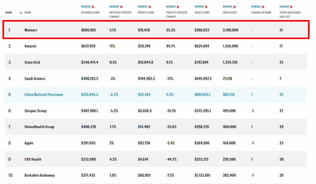 因为沃尔玛在榜首待得太久,很多人习以为常,不以为意。