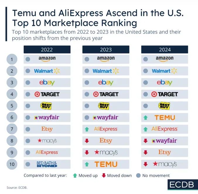以销售额计算,在美国,沃尔玛是仅次于亚马逊的第二大的电商平台。