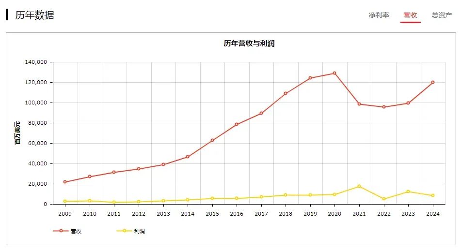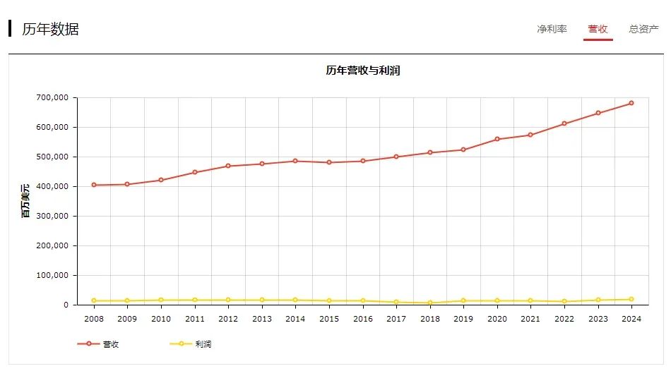 特别是2024年,营收高达6809亿美元,依然保持5.1%的增长,殊为不易。