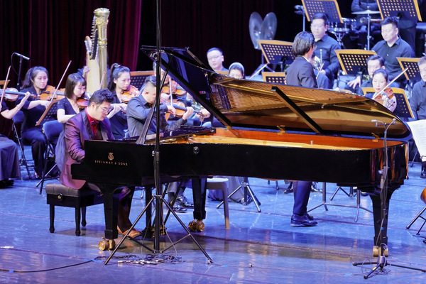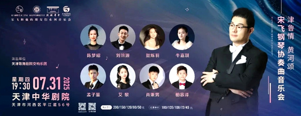 7月31日晚,天津中华剧院座无虚席,一场期待已久的音乐盛宴在此精彩上演——“津鲁情·黄河颂”宋飞钢琴协奏曲音乐会取得圆满成功。这场音乐会不仅是旅欧钢琴家、山东外事职业大学国际钢琴艺术中心主任宋飞钢琴演奏生涯中的又一高光时刻,更是他多年来在钢琴教学领域深耕,尤其是在中外钢琴教学、中外艺术交流等领域做出卓越贡献的一次新的生动展示。音乐会由青年指挥马佳鑫执棒。