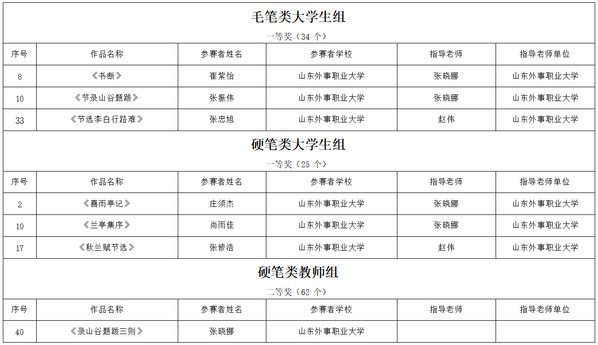 此次学校师生在升级赛事中获奖,不仅是对学校书画艺术教育成果的有力印证,更充分彰显了师生们对中华经典文化的深刻领悟与传承热情。一直以来,山东外事职业大学高度重视中华优秀传统文化教育,通过强化书画艺术专业建设、开展经典文化进校园活动等举措,为师生搭建了传承文化、提升素养的良好平台。