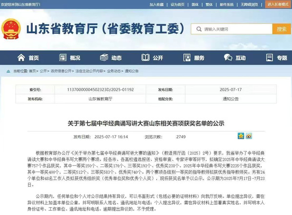 7月17日,山东省教育厅公布了第七届中华经典诵写讲大赛山东赛区获奖名单。山东外事职业大学艺术学院书画艺术专业师生凭借深厚的文化积淀与精湛的艺术技艺,在“笔墨中国”汉字书写大赛项中表现突出,一举斩获多个奖项,为学校赢得荣誉。