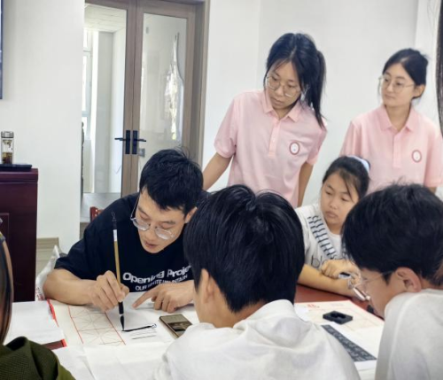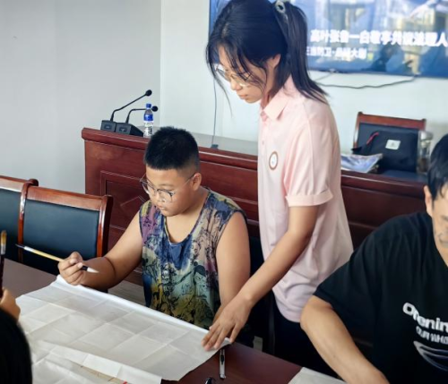 针对楚丰社区“文化活动匮乏、务工人员关怀不足”的需求,团队启动“文化浸润”与“民生服务”双矩阵联动,通过“价值共生”机制激活基层活力。在“红色书法课堂”上,志愿者们手把手教社区青少年书写“请党放心,强国有我”“爱我中华”等标语,结合毛笔字的起承转合讲解背后的革命故事,让20余名孩子在笔墨丹青中感受传统文化与红色基因的交融。