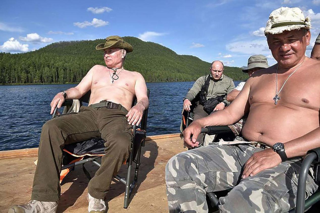 2018年,普京第四次当选总统,心情很好。那一年,在图瓦州的森林里,普京和绍伊古打着赤膊,策马奔腾,野钓、野游、野炊,普京不无自豪地向世界展示,他和绍伊古的亲密关系。