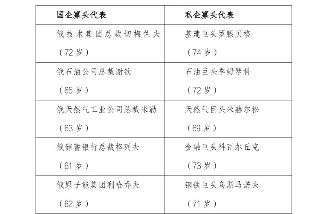 普京是这个寡头圈的老大,具体成员包括国有企业负责人(国企寡头)和私有企业老总(私企寡头)。比较著名的是下面“10大金刚”。