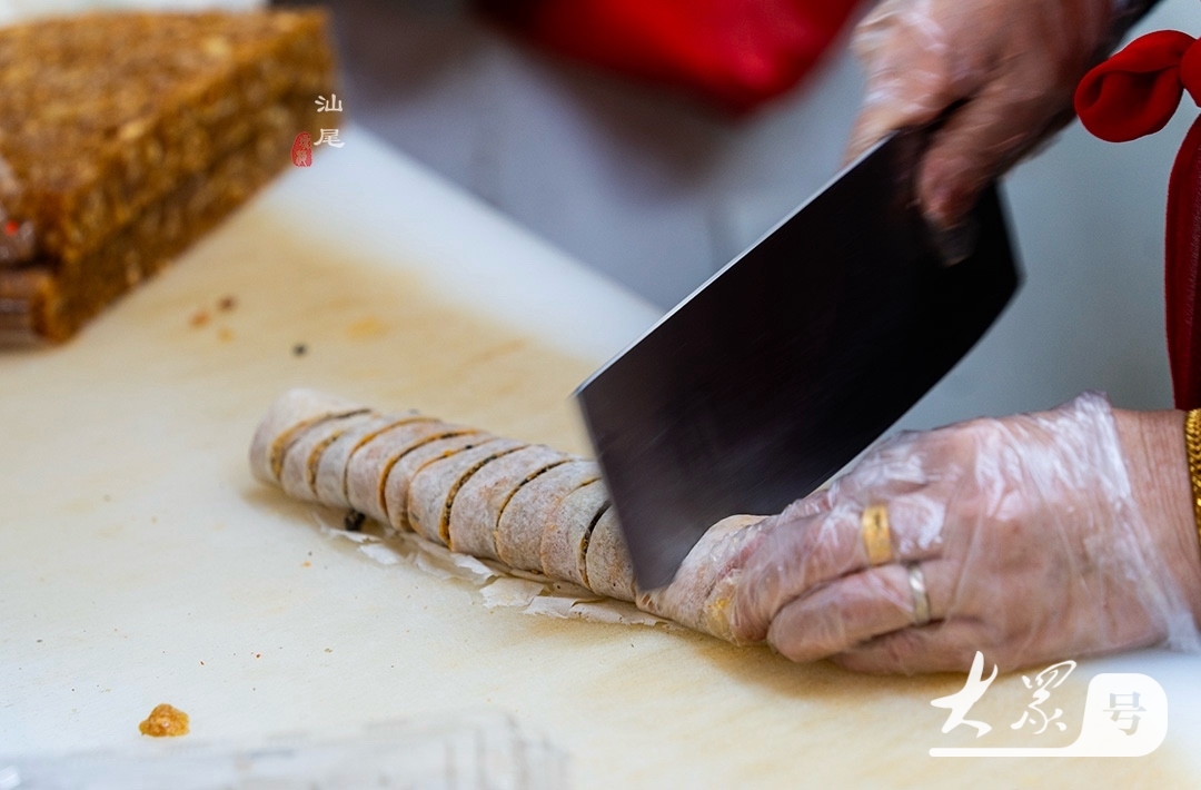 - 甜薄饼制作过程超治愈——阿姨会加花生酥、豆酥后用铁锤拍碎再卷起