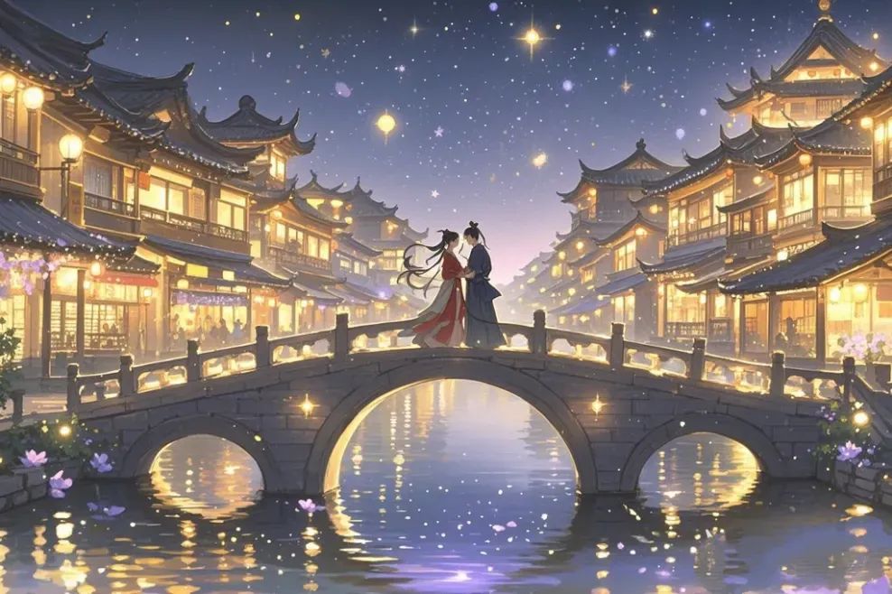 苏轼的学生秦观,则以一曲“纤云弄巧,飞星传恨,银汉迢迢暗度。金风玉露一相逢,便胜却人间无数。柔情似水,佳期如梦,忍顾鹊桥归路。两情若是久长时,又岂在朝朝暮暮”,成为《鹊桥仙》词作的巅峰之作,最后一句,更成为古今传诵的七夕金句。