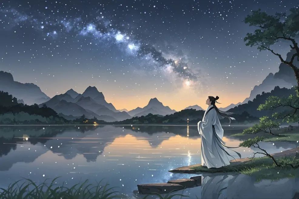 一词写罢,也许是回到家中,苏轼意仍难平,遂作第二首。风回仙驭云开扇。更阑月堕星河转。枕上梦魂惊。晓来疏雨零。相逢虽草草。长共天难老。终不羡人间。人间日似年。夜深人静时,遥想鹊桥上牛郎织女相见复别离的场景,不禁惊魂梦醒,世俗以牛郎织女相会之夕,必有微雨,也含有巫山云雨之意。