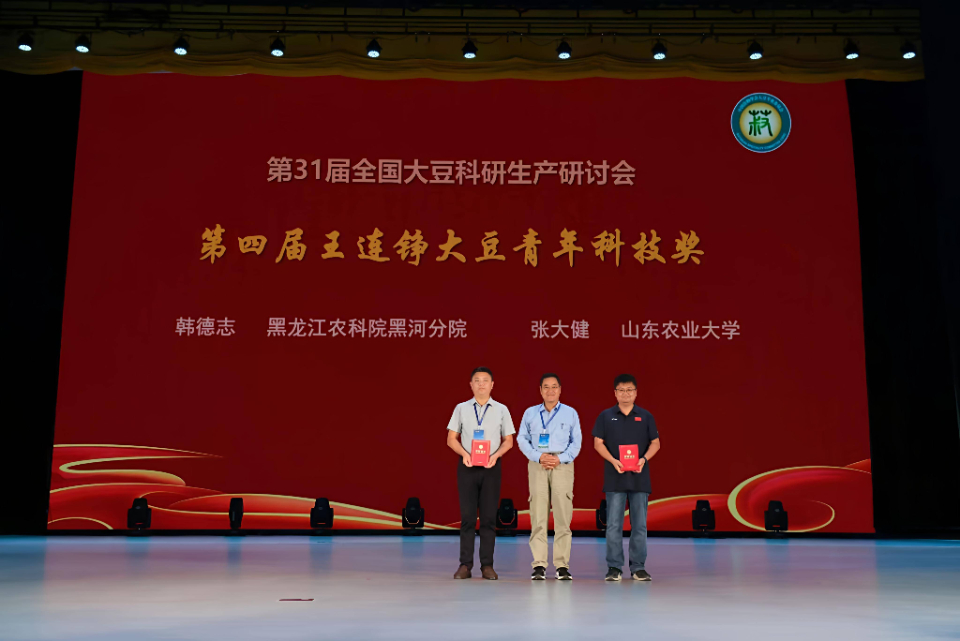 近日,第31届全国大豆科研生产研讨会在内蒙古兴安盟召开,会上举行了第四届“王连铮大豆青年科技奖”颁奖仪式,山东农业大学农学院张大健教授获此殊荣。