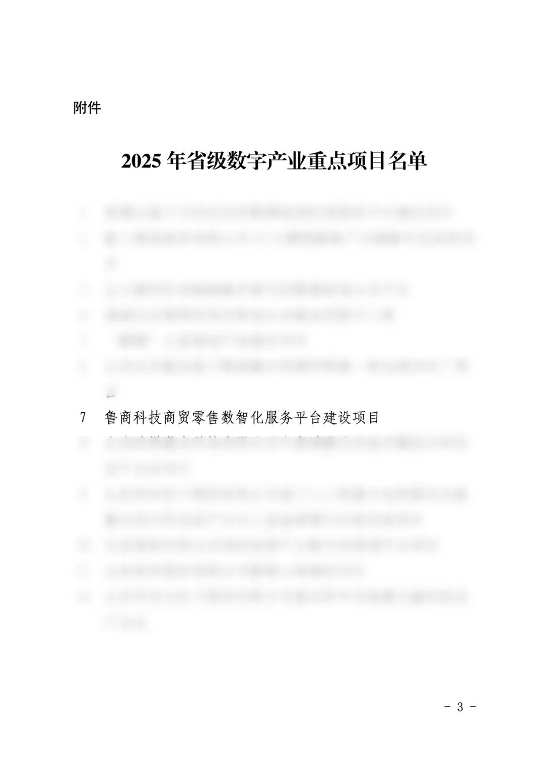 鲁商科技“商贸零售数智化服务平台建设项目”入选2025年山东省数字产业重点项目