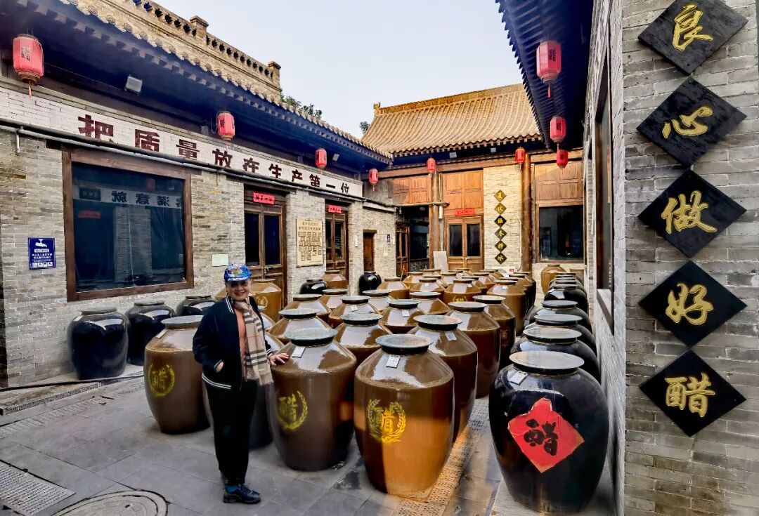 嗅着一阵阵醋香来到一座老醋坊,店家热情地把我们请进店门,并领我参观醋的制作工艺流程。