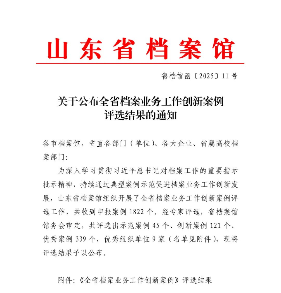 近日,山东省档案业务工作创新案例评选结果揭晓。中泰证券报送的《创新驱动 数智赋能——中泰证券投资银行类业务工作底稿电子化管理的实践探索》案例获评“档案服务企业高质量发展·创新案例”,为该奖项41家获评单位中唯一的金融企业。