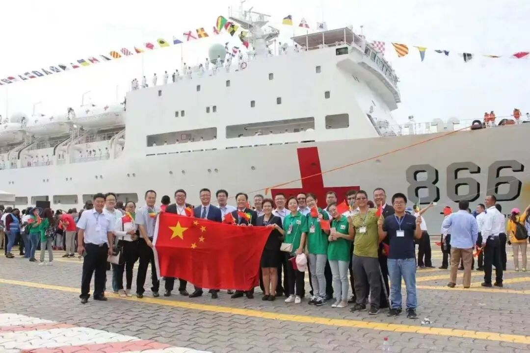 中国的和平方舟医疗救援船在非洲为当地居民义诊