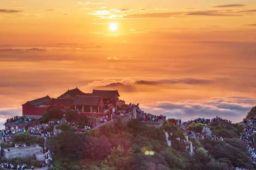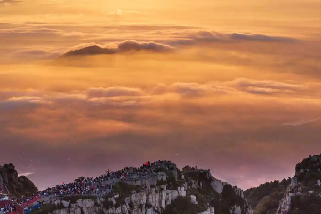 泰山之云海,非寻常可见。须得前日有雨,次日放晴,水汽蒸腾,方成云海。秋日里,这般气象更显珍贵。云层如涛,翻涌于千峰万壑之间,远望似大海无涯,近观则如轻纱缭绕。