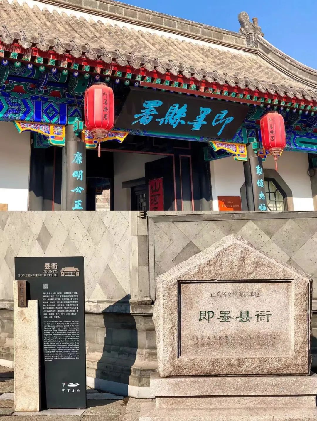 📍参观即墨县衙,它是山东省唯一保存至今、三堂俱存的封建时代遗存衙署,可感受古代县衙的威严。