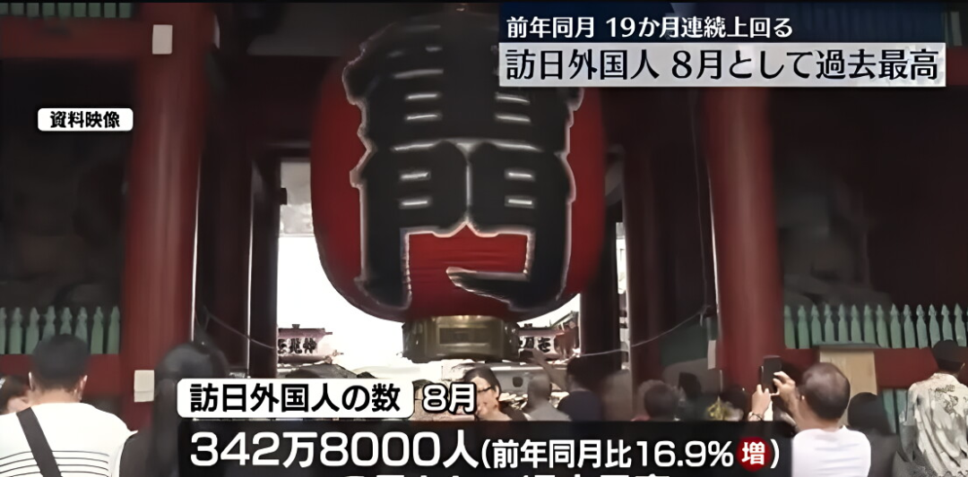 今年8月,日本共有国外游客342.8万人。其中,最多的是中国大陆,有101.86万(同比增长36.5%),占到将近30%。