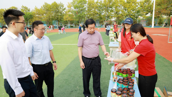 在各展位前,徐东升一行详细了解了乳山产品的特色、生产工艺及销售情况,并鼓励参展企业借助校地联动平台,更好地推广乳山优质产品。与师生交流时,他认真倾听大家的体验反馈,并指出此次活动不仅为师生提供了便捷的消费选择,也搭建了校地资源对接的桥梁,对丰富校园文化生活、助力地方特色产业发展具有积极意义。