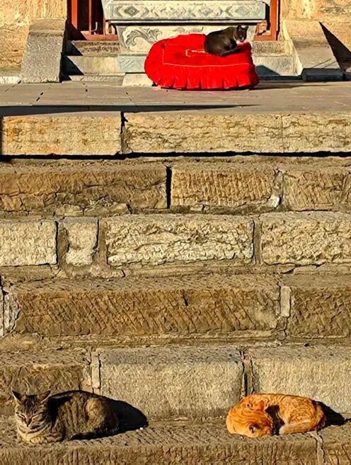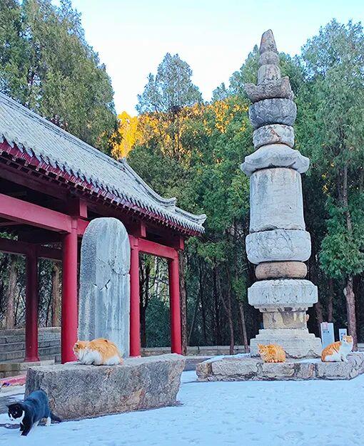 济南南部山区的柳埠四门塔,是中国最早的单层亭阁式石塔,始建于隋。其所在的神通古寺,不知从何时起,成为流浪猫的聚集地,最多时有近百只,以中华田园猫为主,花色有橘猫、三花、奶牛等种类,共同构成一道独特风景。这里又因游戏《黑神话:悟空》在此取景而成为网红打卡地。网友们亲切地戏称其为“猫猫寺”。