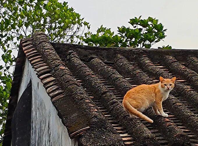 房顶上的橘猫(牛国栋摄于广东中山市孙中山故居)