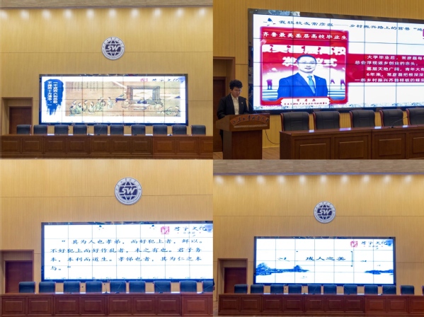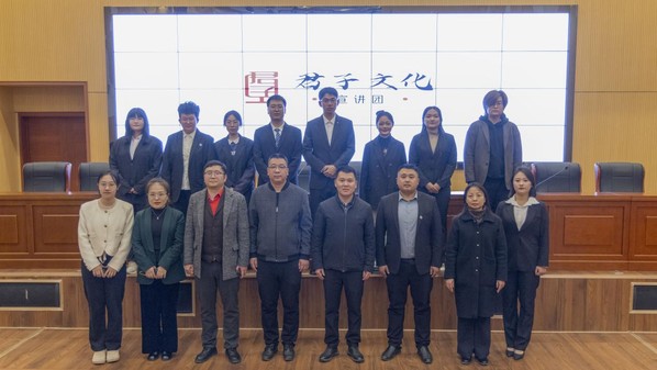 为贯彻落实学校《关于进一步提高校园文化活动水平的意见》精神,弘扬中华民族优秀传统文化,鼓励当代青年学习与传承君子品格,深入挖掘君子文化的时代价值,3月27日下午,由党委宣传部与教育学院联合主办的山东外事职业大学君子文化宣讲团成立仪式在汇远楼206会议室举行,并开展了首场君子文化宣讲活动。党委宣传部副部长张辉、学生处副处长孟令学、外国语学院行政副院长闫家进、教育学院行政副院长孙春艳、教育学院美育教研室副主任翟清及部分师生代表参加了此次活动。