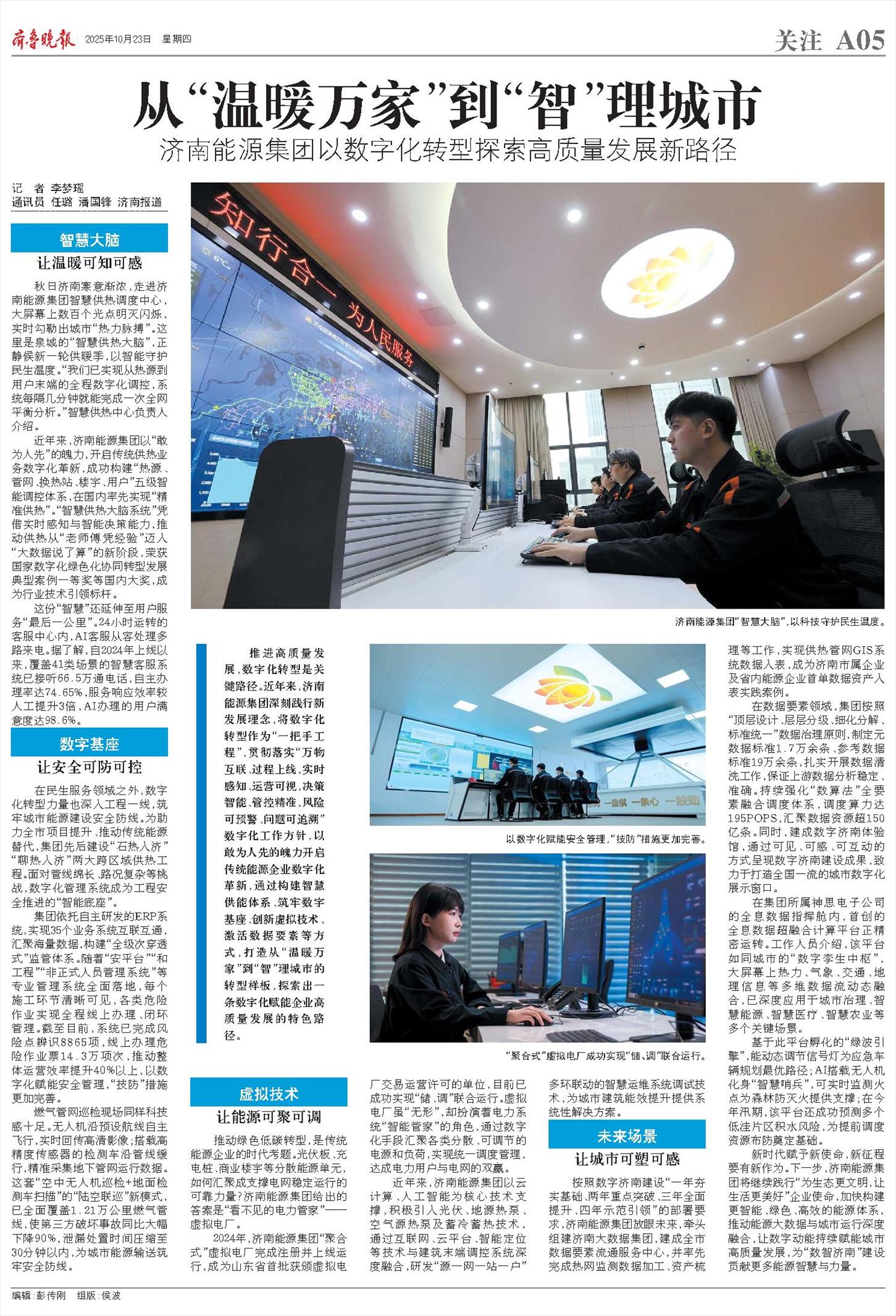 济南能源集团“智慧大脑”,以科技守护民生温度。