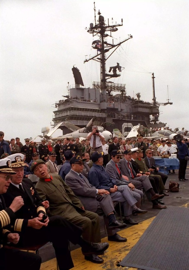 网友们最熟悉的那张刘华清踮起脚的照片,就是在这次访问中留下的(当然,照片上并不是美国航母,而是“福克斯”号导弹巡洋舰)。
