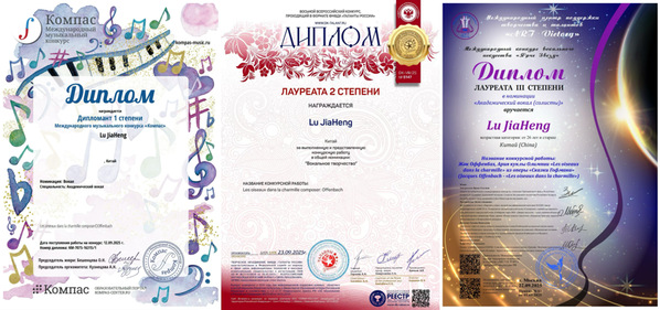 上述赛事由Компас国际学术声乐大赛、俄罗斯国际人才艺术比赛和“明亮之星”国际声乐比赛由俄罗斯Компас国际音乐比赛中心等权威机构主办,吸引了来自世界各地的优秀声乐艺术家和青年学者同台竞技,赛事专业性强、评审标准严格、竞争极为激烈。比赛中,鹿家衡凭借扎实的声乐功底、娴熟的美声技巧和深刻的艺术表现力,赢得了专家评委的一致认可。