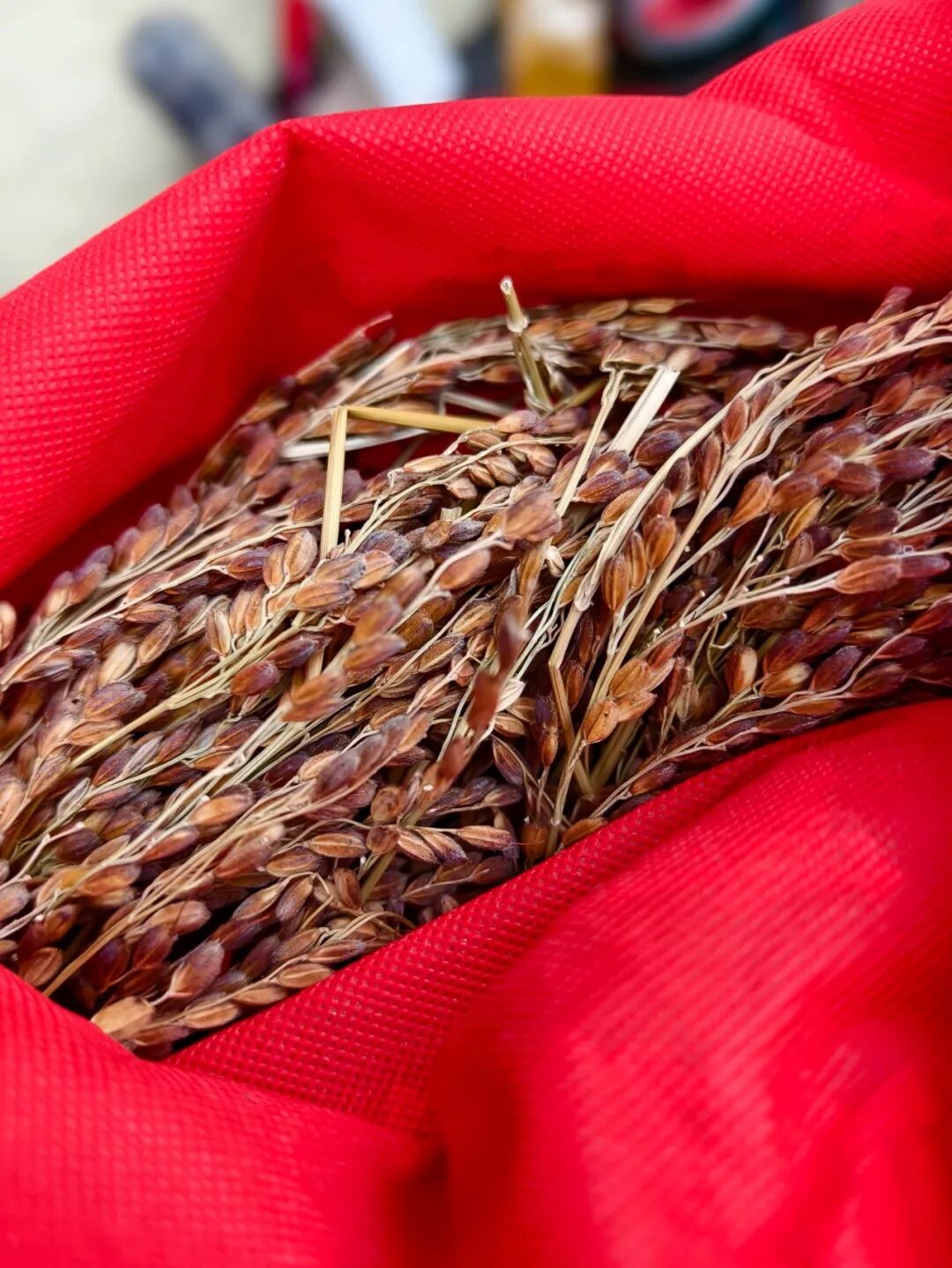 孙大哥用红色布包保留的各种老种子“我到现在也不晓得他为啥子选了我,选了我的红嘴糯,”在孙家密封各种谷物成品的屋子里,一本《消失中的食物》和产品价格单摆放在显眼的位置。但书中人孙大哥显然没有寻根究底的兴趣。他选择种植红嘴糯,原因朴素简单:“我小时候就吃这种米,做出来的醪糟好甜好好喝,蒸出来的饭又黏又糯,香喷了,我就喜欢这种口感。”