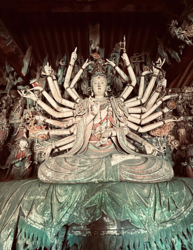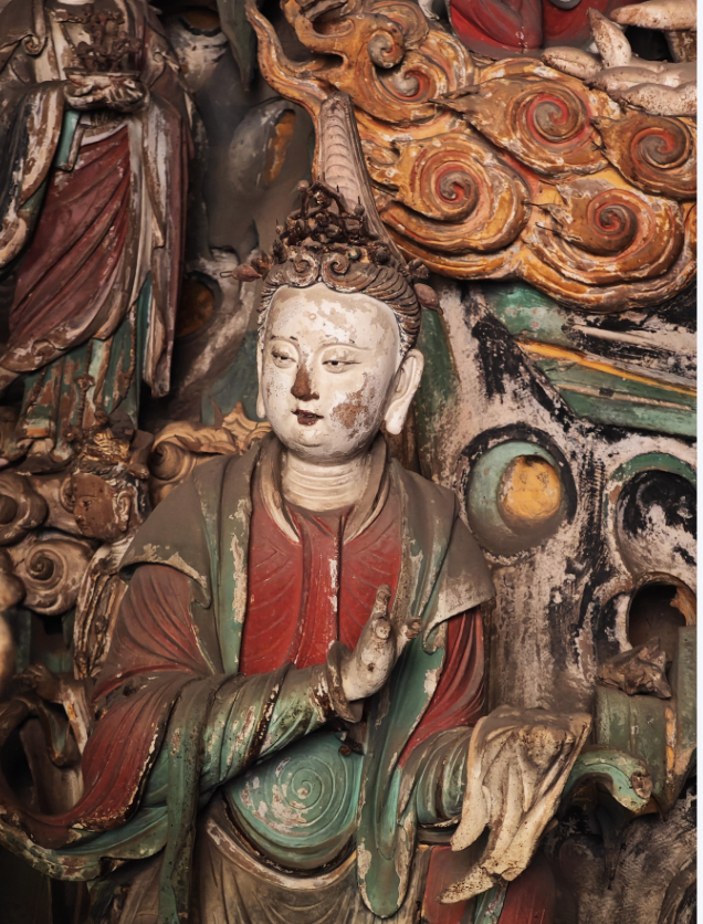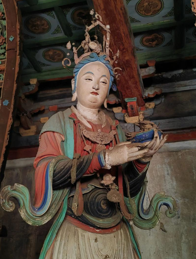 “菩萨殿的二十六尊菩萨像展示了宋代彩塑的巅峰成就。与后世菩萨造像的程式化不同,这些宋代作品各具神韵:有的低眉垂目,如水中莲花般静谧;有的含笑凝望,似春风拂面般温暖。”