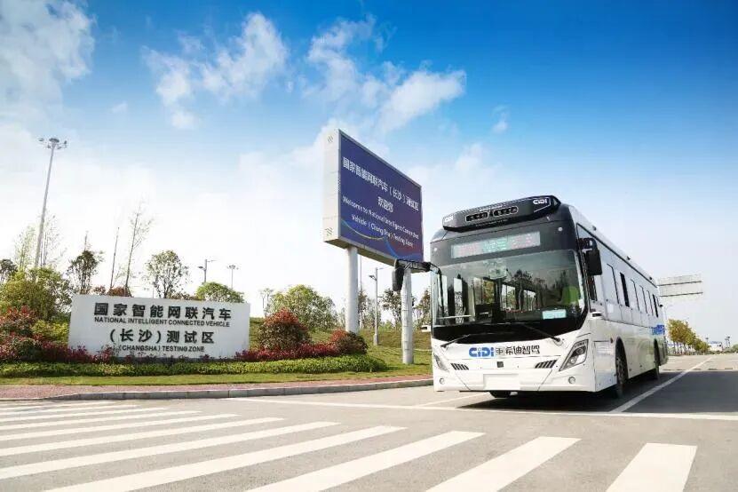 在国家智能网联汽车(长沙)测试区的希迪智驾公交车