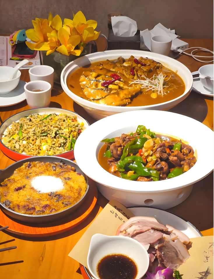 司机开着车为我们介绍着县城的市容风景,最后把我们送到离我们住宿酒店不远的一个叫‘家乡味道’的餐馆说这里应该可以吃到我们洪洞县最好吃的美味佳肴。