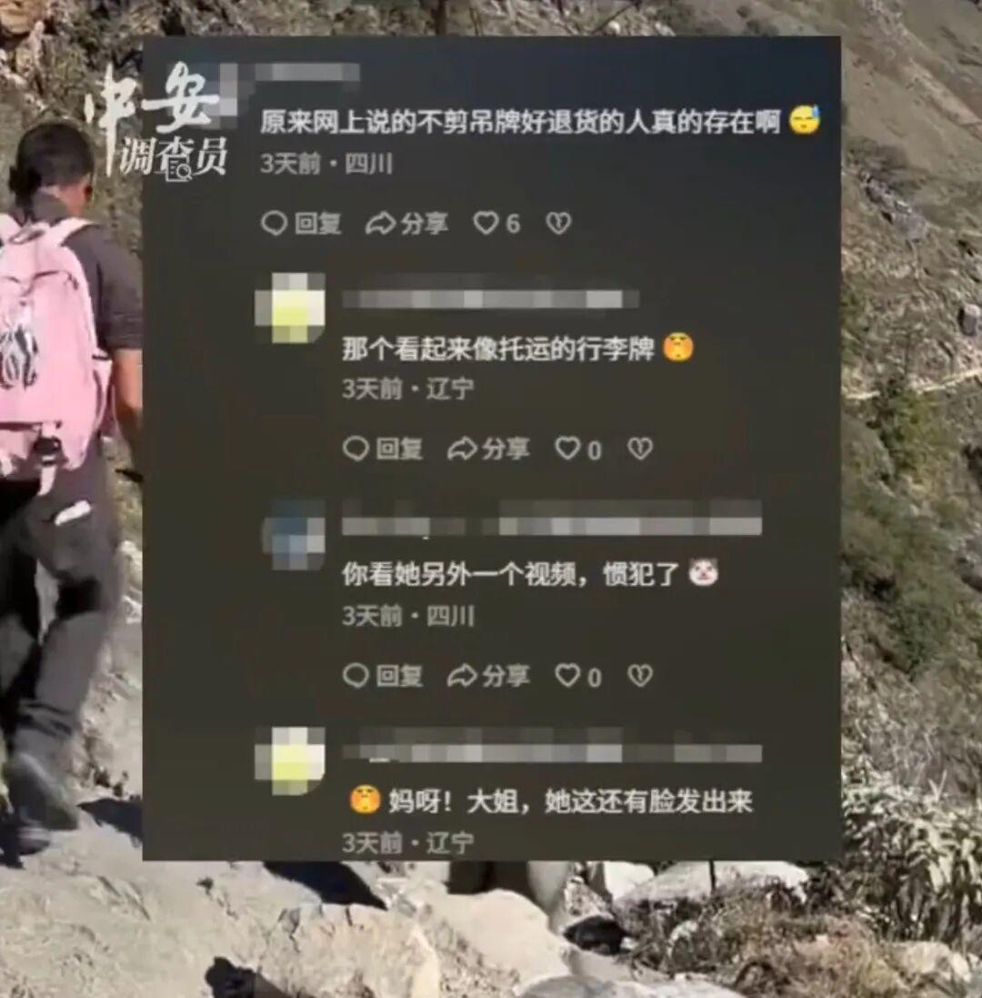 视频中,她背包和雪服上几个未剪下的吊牌,成为这场网络舆论的导火索。
