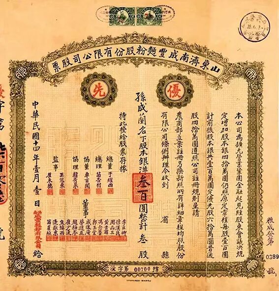 1925年成丰面粉股份有限公司股票