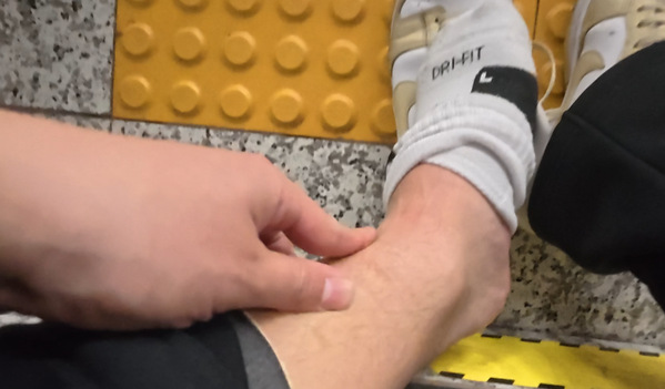 运行中的扶梯台阶湿滑且带有缝隙,每一步都需用力踩稳。张志豪一心只想尽快按下急停按钮,无暇顾及脚下,脚底被金属台阶划伤也强忍疼痛继续向上,最终成功按下急停按钮。扶梯停止后,周围群众连忙上前扶起老人。见老人身体无碍,张志豪才放心离开。
