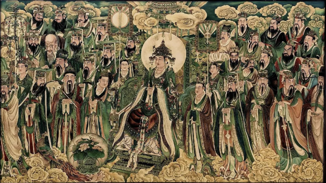推开无极殿厚重的木门,昏暗的光线中,一幅高4.26米、长94.68米的巨幅壁画扑面而来,震撼得让人屏息。这便是《朝元图》,道教壁画史上的巅峰之作,描绘了近300位天神朝拜元始天尊的恢弘场景。