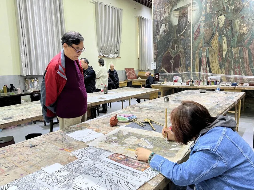 舒建新在壁画前为我上了一堂生动的艺术课在他一步步的讲解下我读懂了这幅壁画永恒的艺术魅力所在。