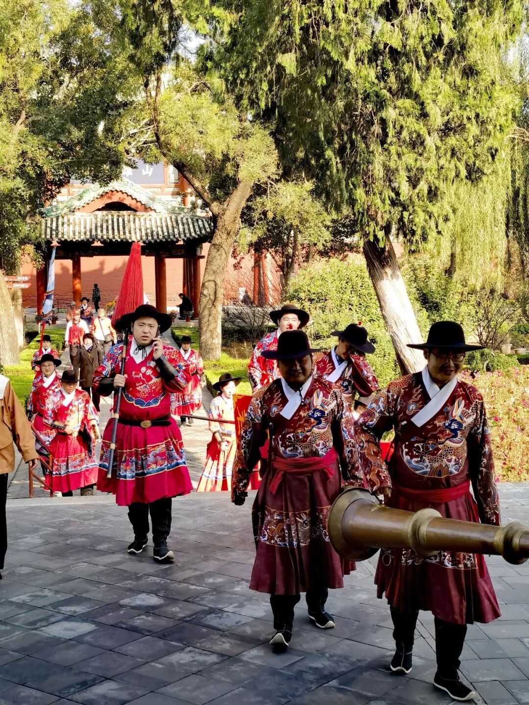 关帝庙前广场上已聚集了数百人。随着三声炮响,朱红色的大门缓缓开启。