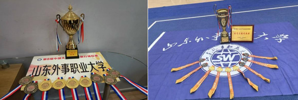 五年来,学院积极组织学生征战中国大学生武术散打锦标赛、长短兵锦标赛、山东省大学生运动会武术套路决赛等国家级、省级赛事,并成功立项承办“一带一路”暨金砖国家技能发展与技术创新大赛首届武术散打总决赛。竞赛成绩斐然,累计斩获金牌24枚、银牌6枚、铜牌18枚。学院先后被中国学生体育联合会、山东省学生体育协会授予“体育道德风尚奖”,被“一带一路”暨金砖国家技能发展与技术创新大赛组委会授予“突出贡献奖”,以优异成绩为学校赢得了广泛赞誉。