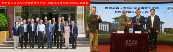 学院以武术专业为核心,积极拓展国内外行业交流合作,探索“职业教育+武术+体育产业”融合发展模式。武术作为中华民族传统体育项目,普及范围广、文化底蕴深、产业价值高,学院立足这一优势,与马来西亚吉隆坡武术总会、香港少林国际武术联合会、世界体育总会、世界体育大学建立合作关系;同时联动郓城宋江武术学校、菏泽曹州武术学校、莱州中华武术学校、聊城江北少林武术学校、济南市体育运动学校等国内知名武术院校,通过强强联手、协同育人、资源共享,有力推动武术专业建设与学科内涵发展。