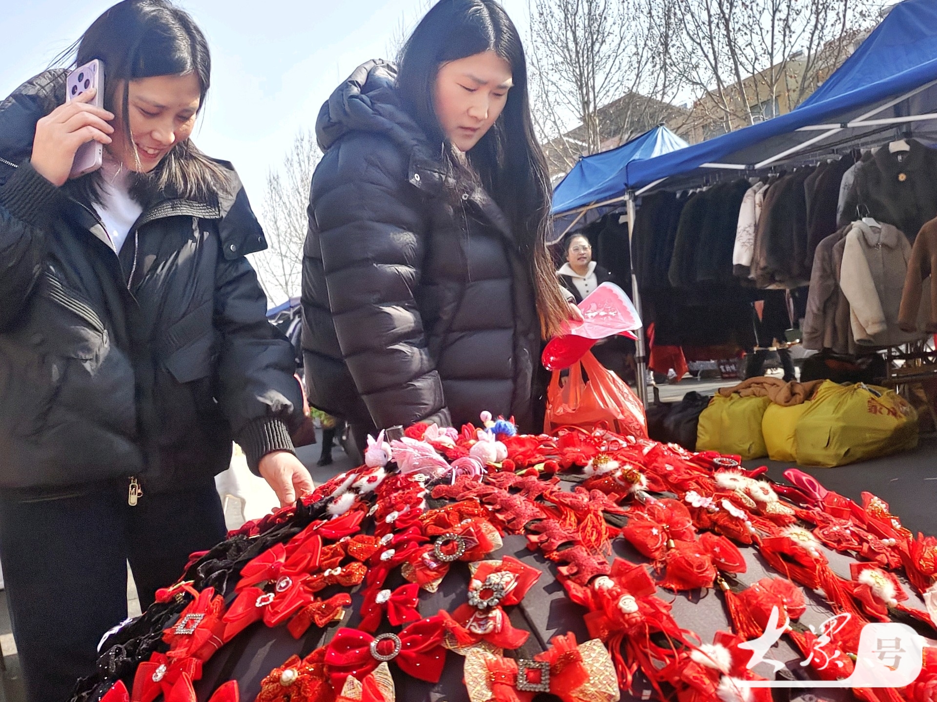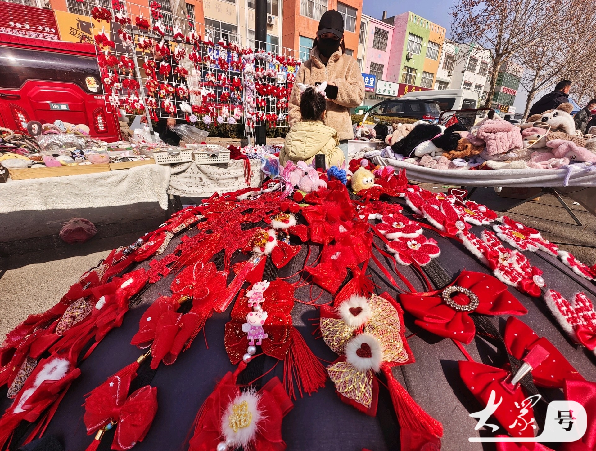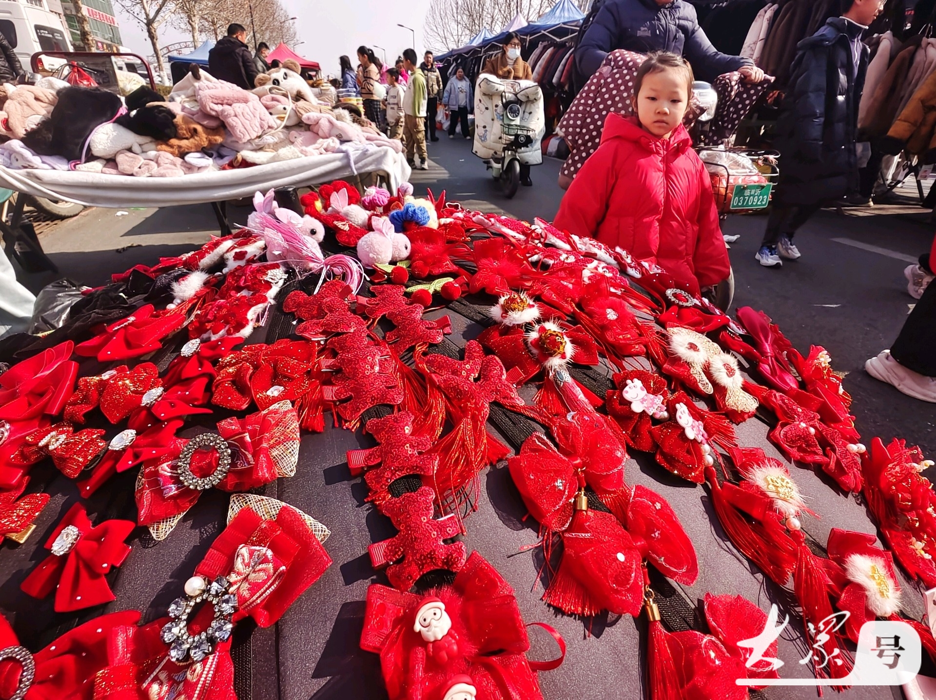 2月11日,农历腊月二十四,临沂沂河新区埠前店迎来了热闹非凡的年集。前来赶年集购置年货的人们摩肩接踵。尤其是那些售卖发饰的摊点上,各种颜色、款式的发夹、头绳、发箍令人目不暇接,氛围格外火热。