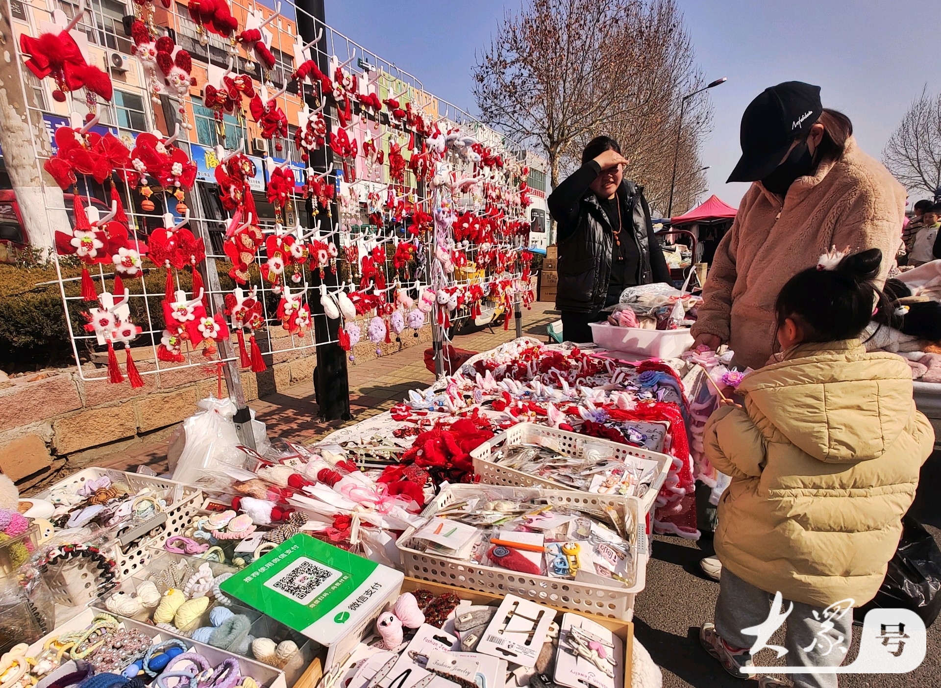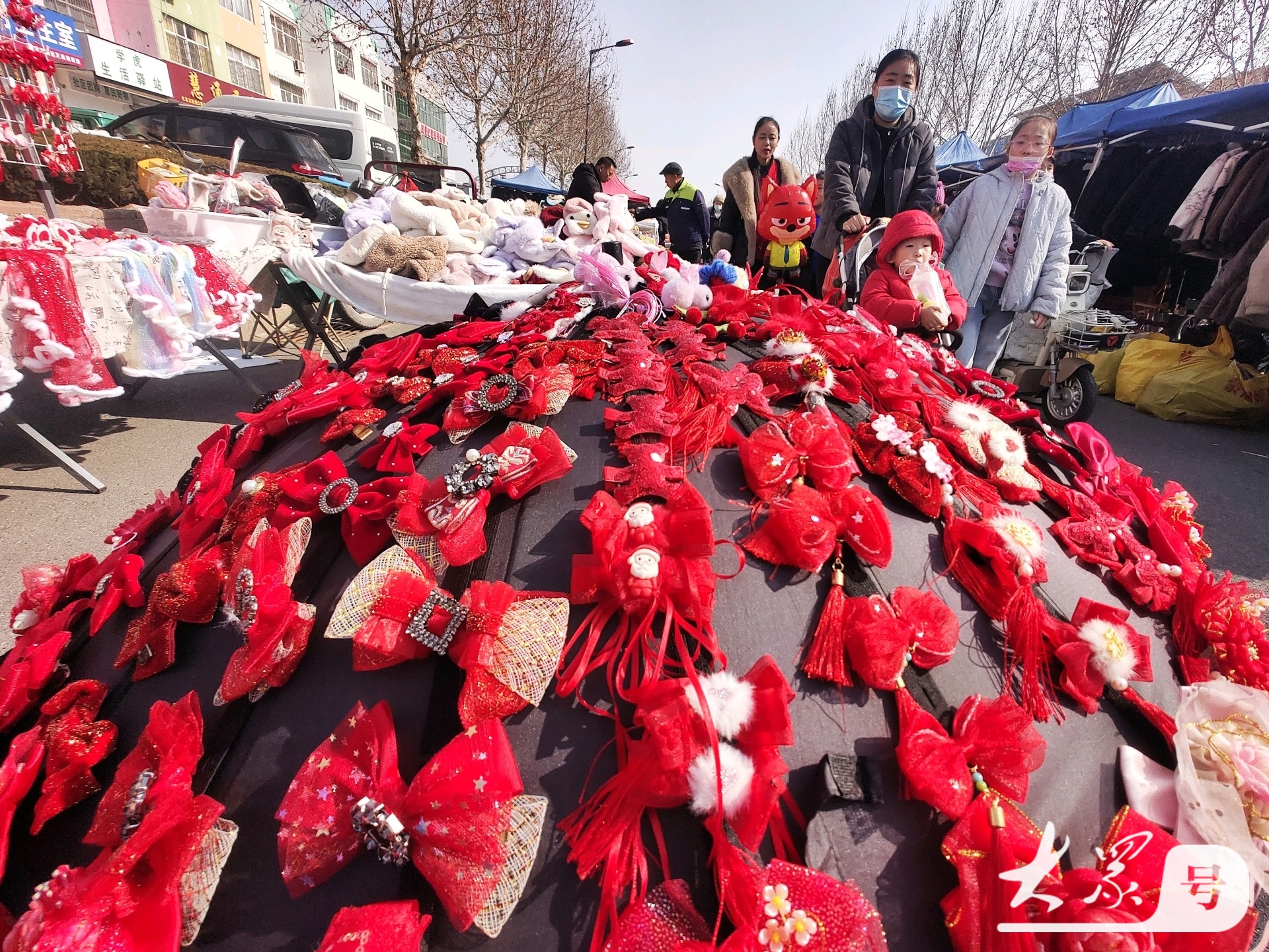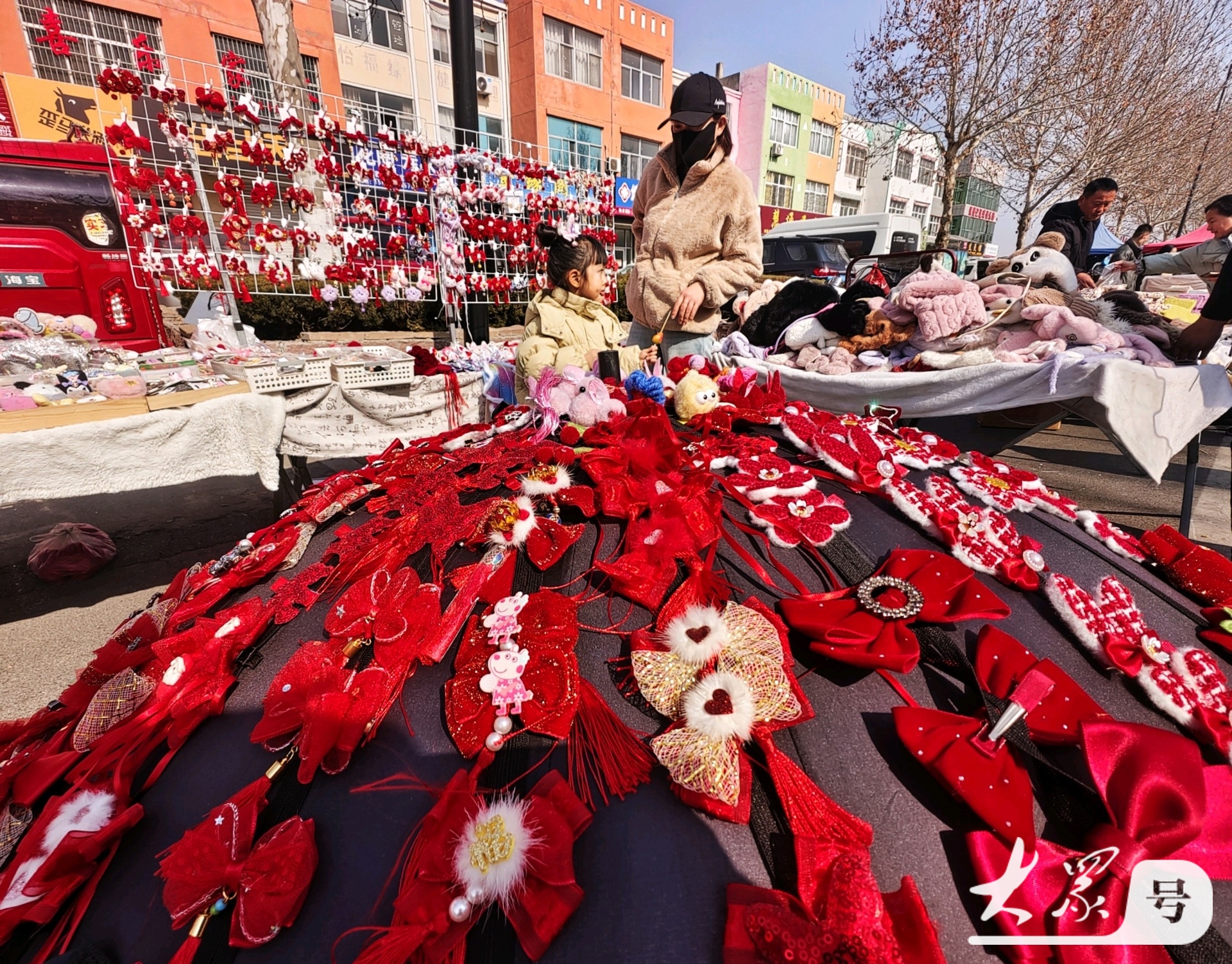2月11日,农历腊月二十四,临沂沂河新区埠前店迎来了热闹非凡的年集。前来赶年集购置年货的人们摩肩接踵。尤其是那些售卖发饰的摊点上,各种颜色、款式的发夹、头绳、发箍令人目不暇接,氛围格外火热。
