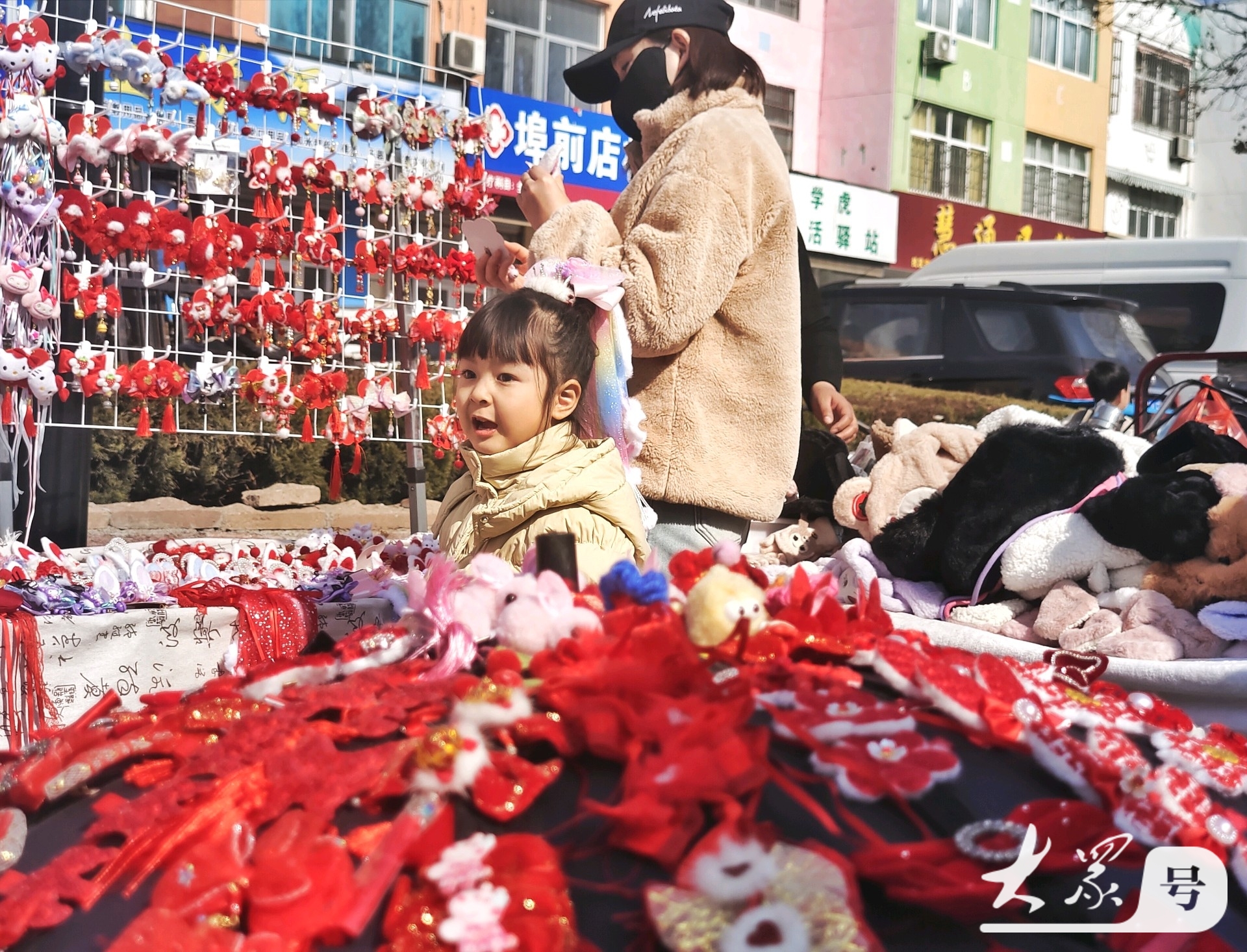 瞧,一对对母女正在卖发饰的摊位前精心挑选着心仪的发夹,戴上后瞬间让人精神焕发。过年戴上全新的发饰,整个人的心情都变得愉悦起来,仿佛新年的好运即将降临。况且,年集上的发饰价格十分实惠,花小钱就能让自己漂漂亮亮地迎接新年。(高军 手机摄影)