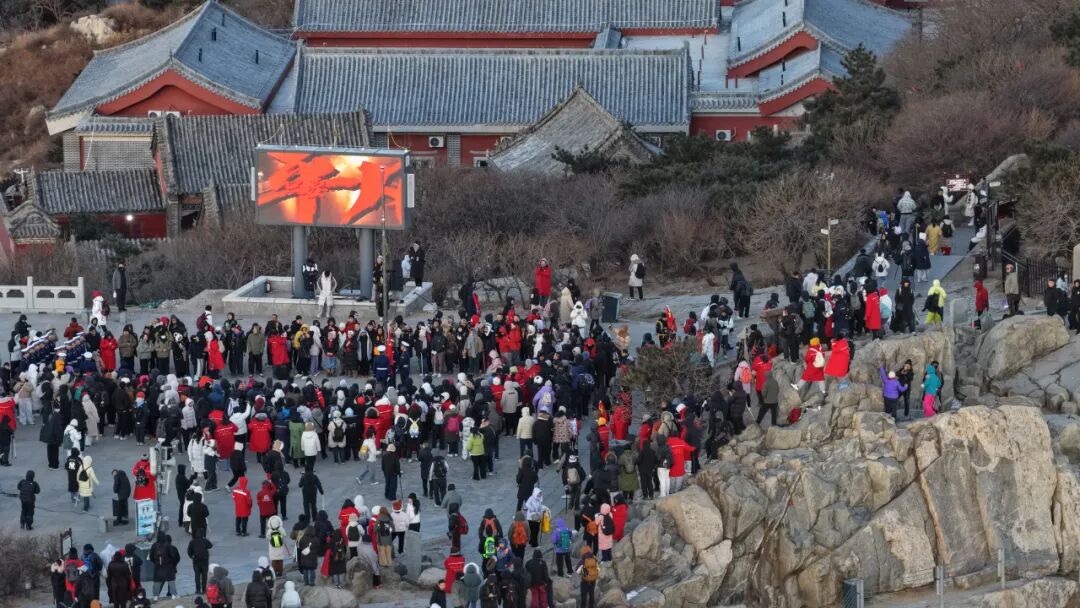 随后,五星红旗在泰山之巅冉冉升起,游客们肃立注目、鼓掌致敬,在雄伟山峦间共同祈愿国泰民安、万象更新,以昂扬姿态开启马年新征程。 摄影:谢强 刘照富